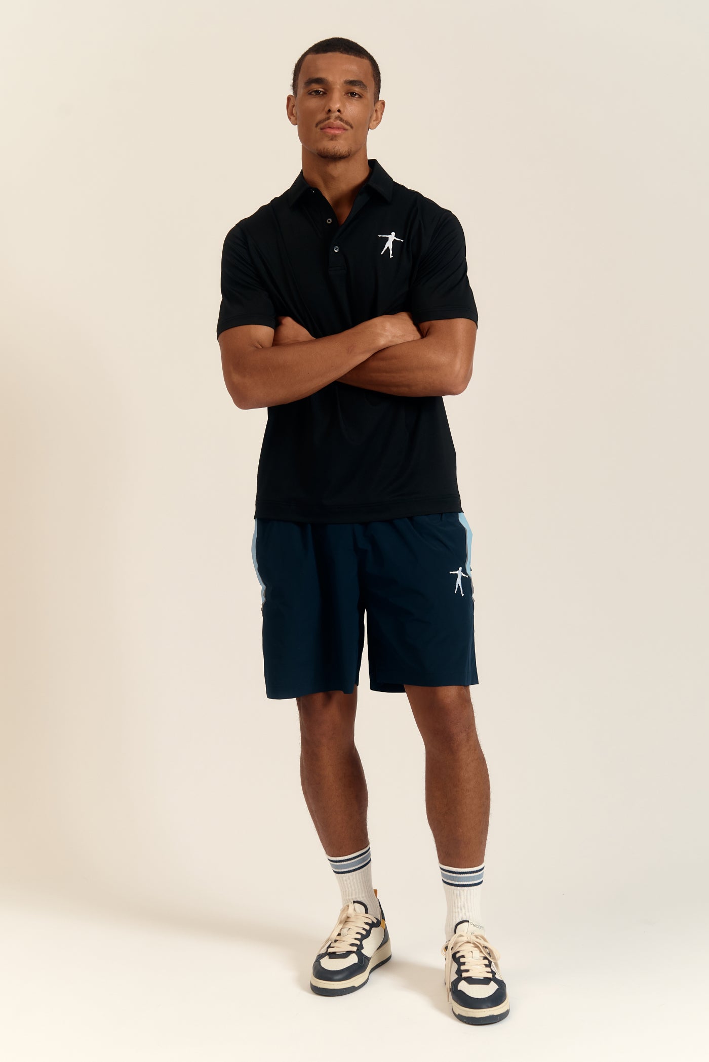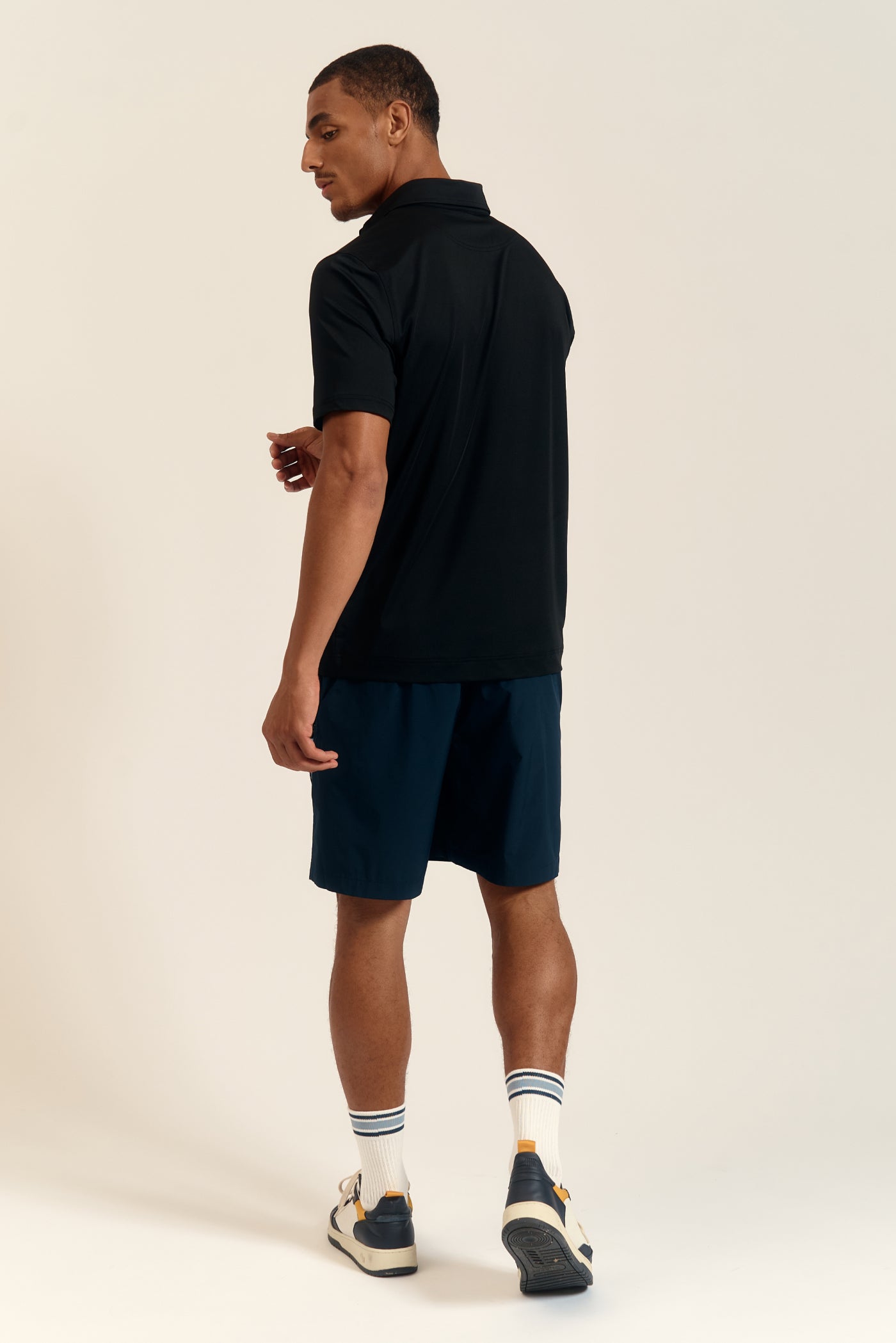 A personal and cool take on the polo shirt with contrasting ribbed collar trim and exposed metal zipper. Contrasting geometric signature embroidery at the chest for a refined touch. Composition:  100% NYLON