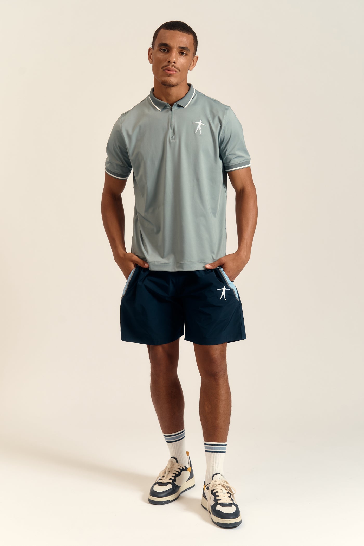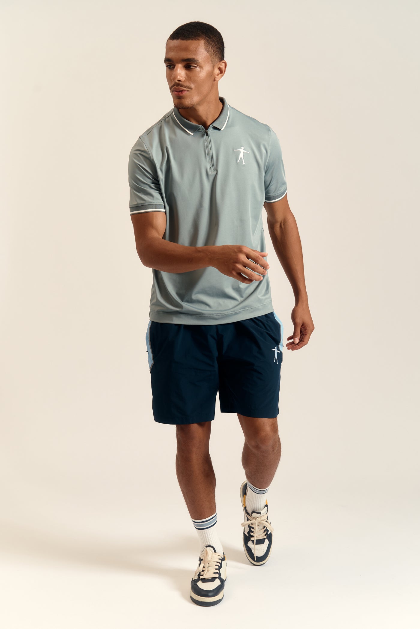 A personal and cool take on the polo shirt with contrasting ribbed collar trim and exposed metal zipper. Contrasting geometric signature embroidery at the chest for a refined touch. Composition:  100% NYLON
